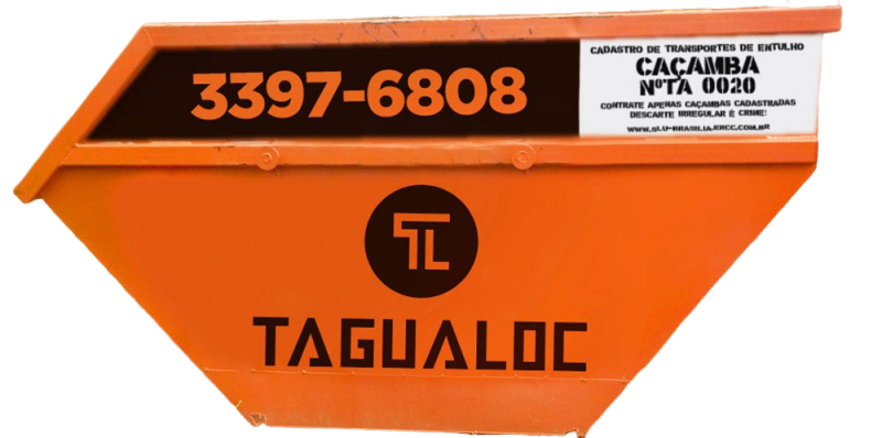 A TAGUALOC oferece o serviço de locação de contêineres para entulho, voltado exclusivamente para o descarte de resíduos da construção civil, em conformidade com a legislação ambiental vigente no Distrito Federal.
